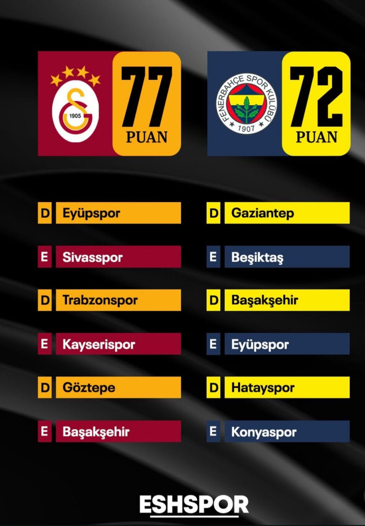 Bu sonuçla sarı-lacivertliler puanını 72’ye yükseltti ve Galatasaray ile ortasındaki puan farkını 5’e indirdi.