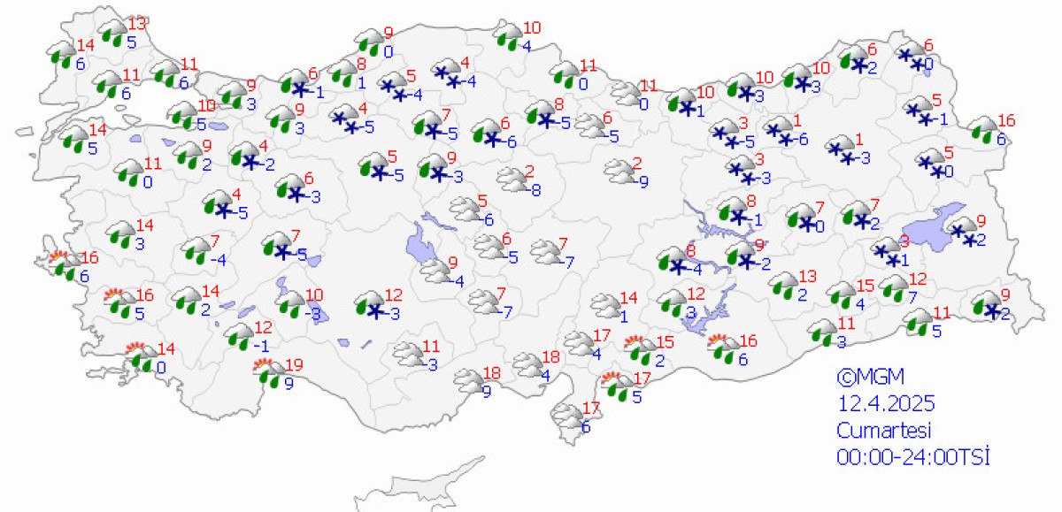 Kıyı kısımlarda ile Marmara ve Güneydoğu Anadolu’da yağmur ve sağanak, yağış alan başka yerlerde karla karışık yağmur ve kar formunda görülmesi beklenen yağışların, Rize ve Trabzon ile Giresun’un doğu bölümlerinde yer yer kuvvetli olması bekleniyor.