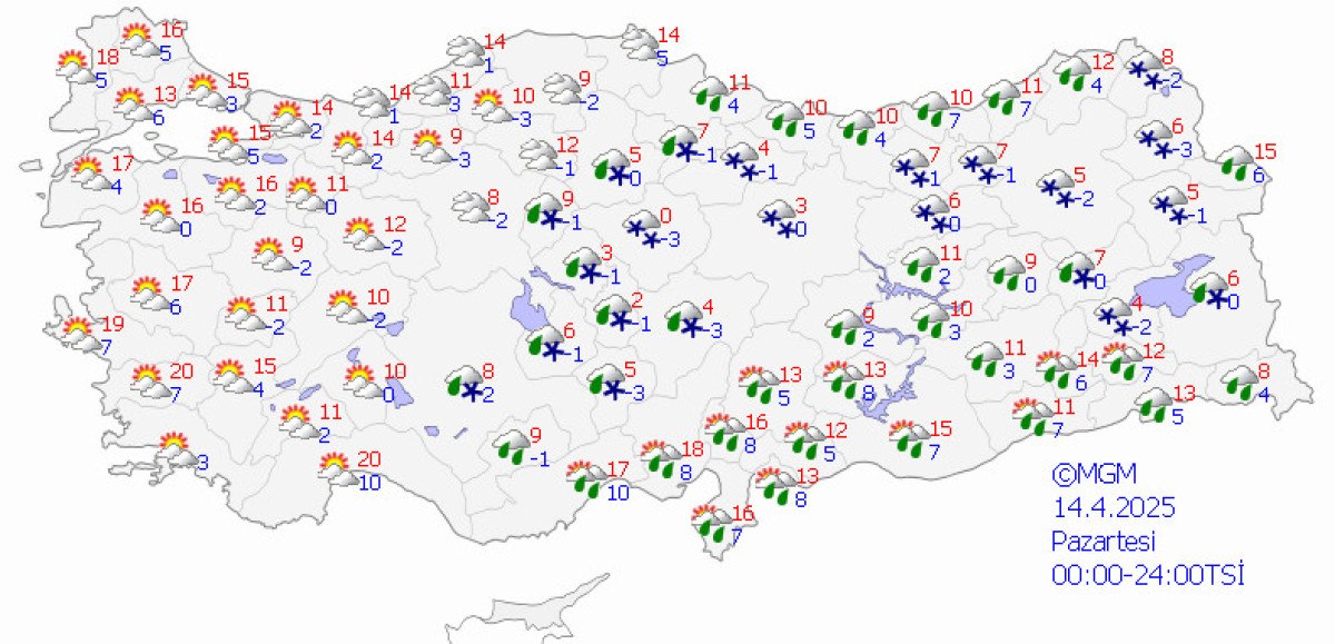 Önümüzdeki hafta ortasına kadar sıcaklıklar, Ankara’da 16, İstanbul’da 19, İzmir’de 21, Antalya’da 25, Adana’da 25, Diyarbakır’da 16, Samsun’da 14 dereceye kadar yükselecek.